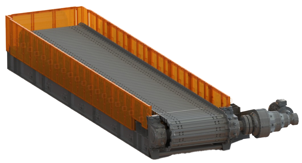 • Suitable for stockpile reclaim operations, rail or truck unloading feeders, and scenarios involving significant material impact and large lump sizes