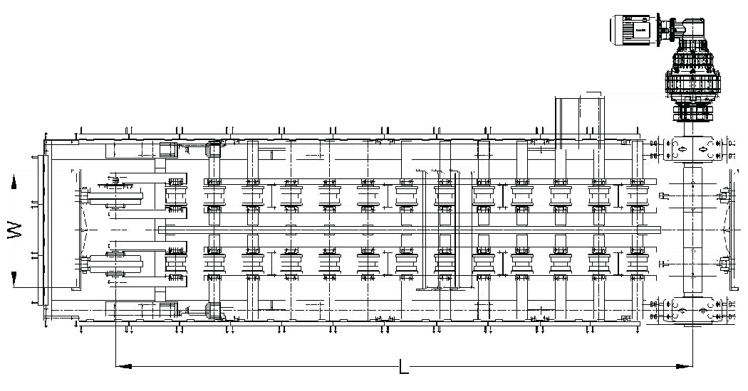 Excessive material thickness elevates chain tension and drive load; therefore, the design must optimize feed layer thickness to ensure efficient operation.