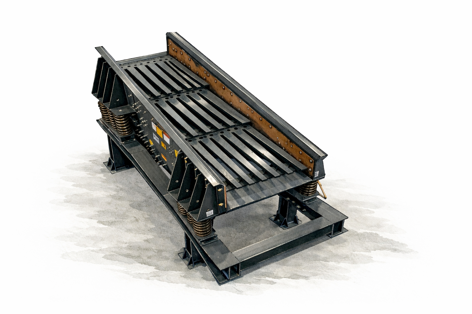 • Vibration / Motion: Decks are vibrated by unbalanced motors or exciters to separate undersize material through the grizzly gaps or screen apertures.